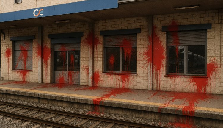 Ο Ρουβίκωνας πραγματοποίησε παρέμβαση στο κτίριο του ΟΣΕ στη Λάρισα την ημέρα που συνεχιζόταν η δίκη για το δυστύχημα στα Τέμπη.